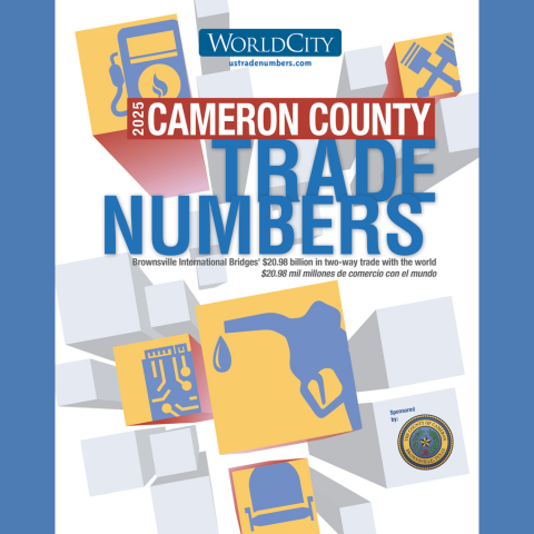 Brownsville, Cameron County TradeNumbers 2025 is available in both printed and digital download versions. This annual publication is a 16-page executive summary full of insights into Brownsville Bridges’ trade using 2024 trade data figures as analyzed by WorldCity using U.S. Census Bureau trade data.
